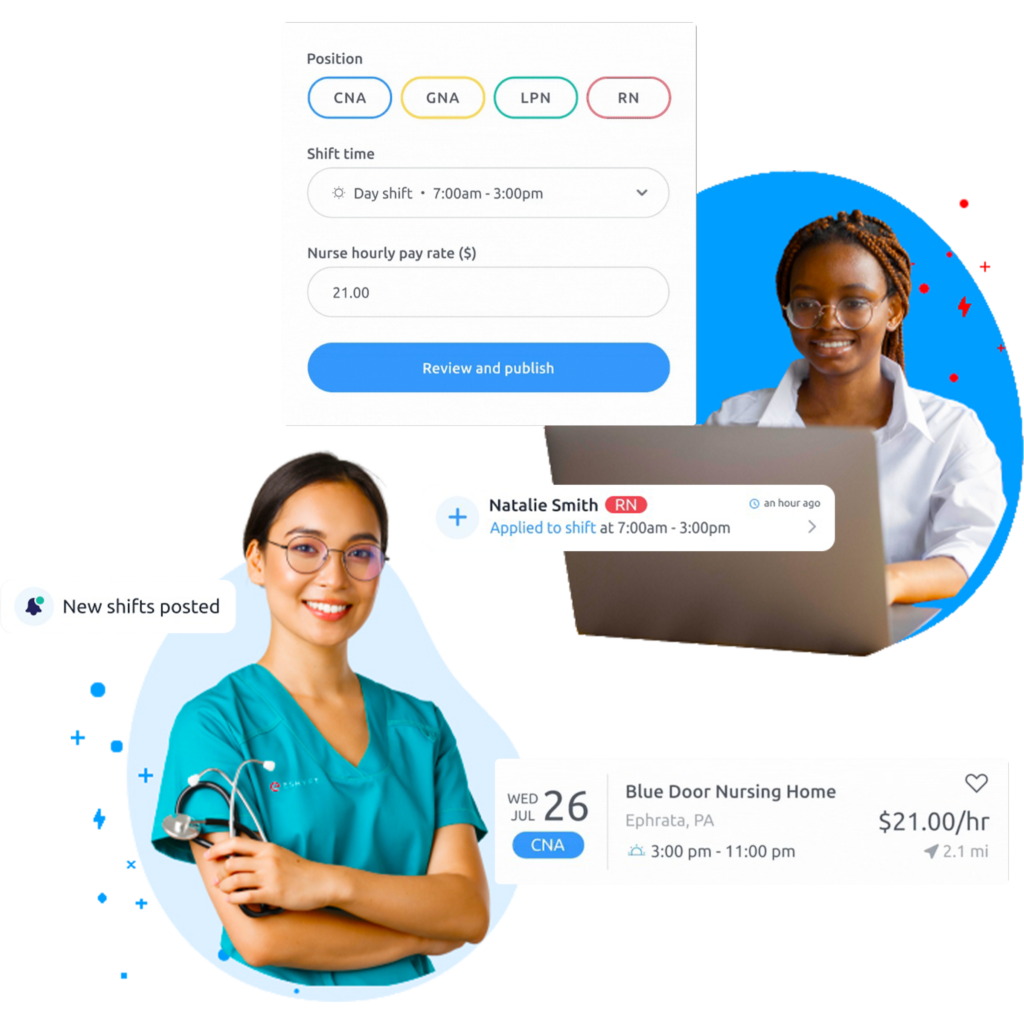 Fasttrack connects CMA, CNA, LPN and RN at assisted livings and long term facilities.